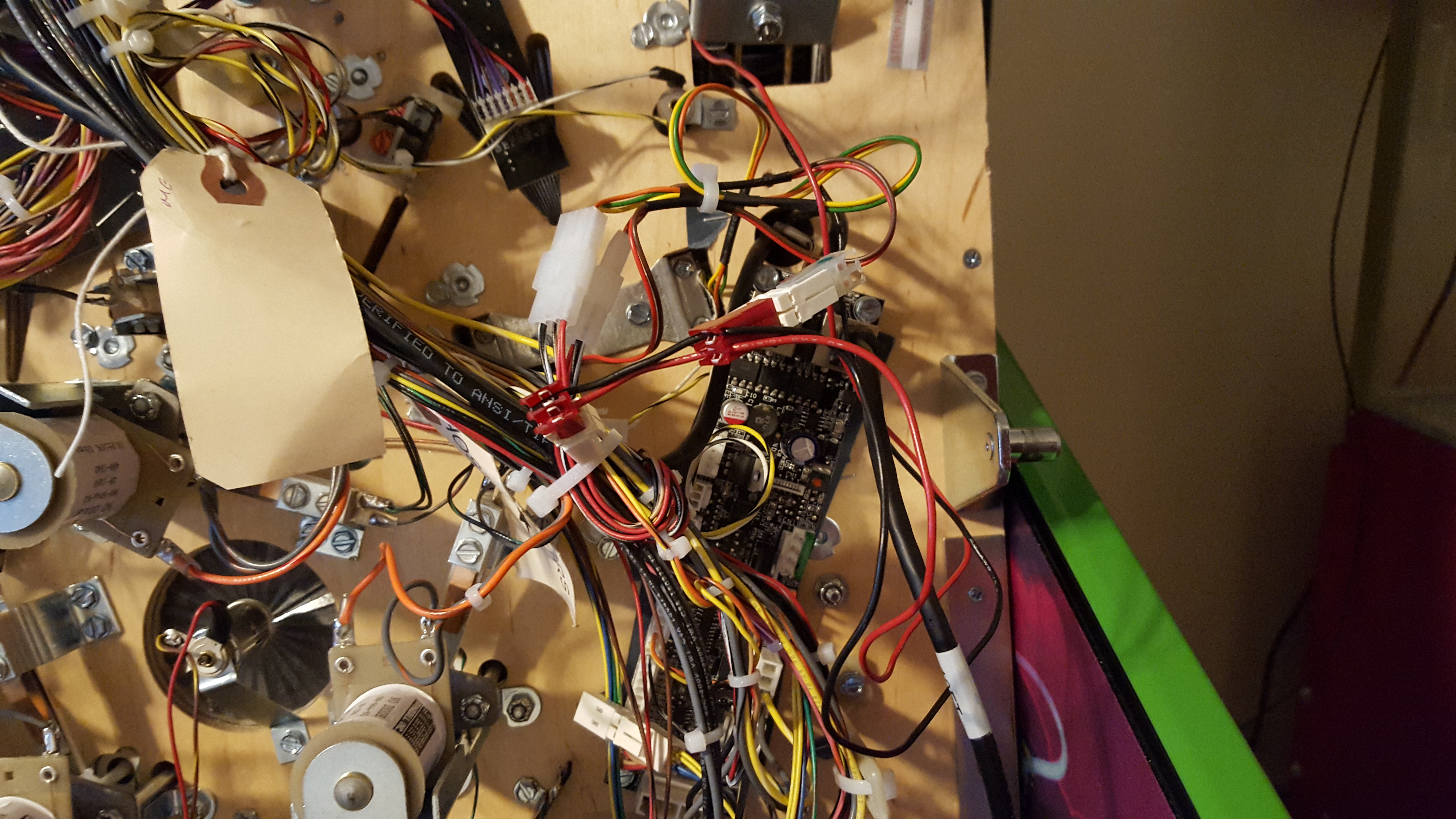 - Run the wires down under the playfield next to the Subway ramp which goes under the playfield.